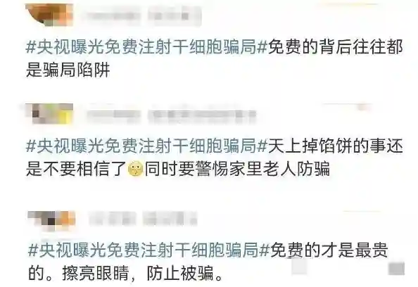 2024年10月11日,央视《今日说法》栏目播出了一则让人瞠目结舌的新闻——“干细胞免费注射”惊天骗局。这一消息瞬间引爆了微博热搜,成为万千网友热议的焦点,仿佛一颗投入湖面的石子,激起了层层舆论的涟漪。