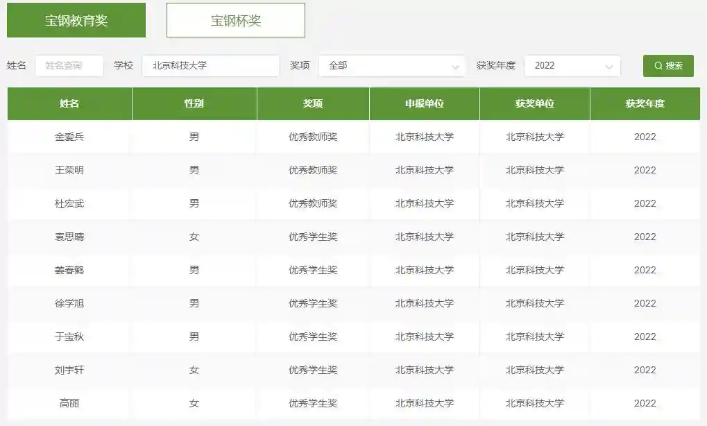 近日,2022年度宝钢教育奖揭晓。北京科技大学共有9人获奖,其中金爱兵、王荣明、杜宏武3位教授获得优秀教师奖,袁思晴等6位学子获得优秀学生奖。