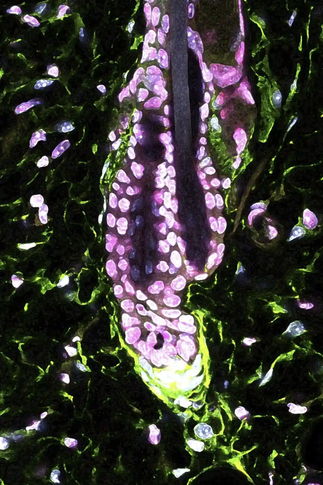 在哺乳动物的整个生命过程中,毛囊是为数不多的能够不断经历多次再生的组织之一。因此,毛囊也成为科学家为理解哺乳动物的干细胞生物学的重要研究对象。毛囊有着自然循环的生长期和静息期,这一过程由毛囊干细胞推动。