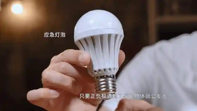 它里面是有电池的,只要正负极遇到导电物体,就可以发光。这个灯泡的正负极就在底部,而人体就是最好的导电物体,所以只要用手指去触碰灯泡底部,它自然就会亮了。