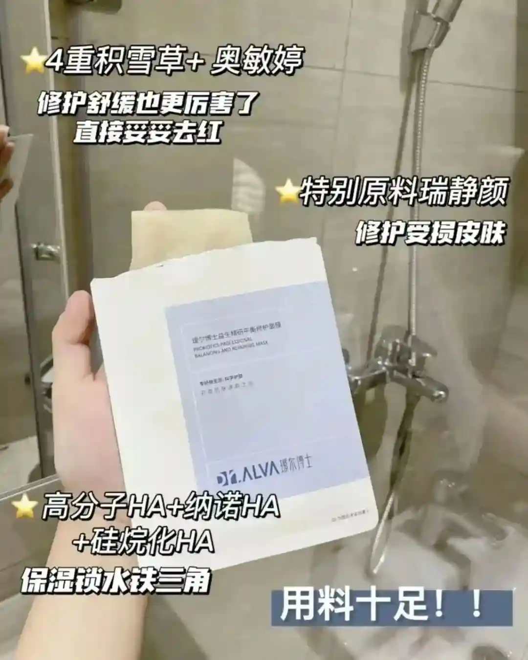 在原本就有的愈创木奥磺酸钠外,还多了他家ECT-HA智配协同科技(依克多因和多重玻尿酸),双倍舒缓脸蛋的不适感~