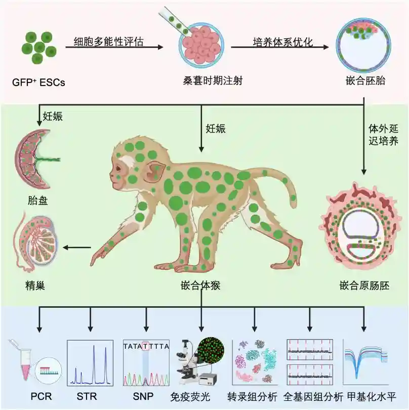 非人灵长类胚胎干细胞嵌合体研究模式图