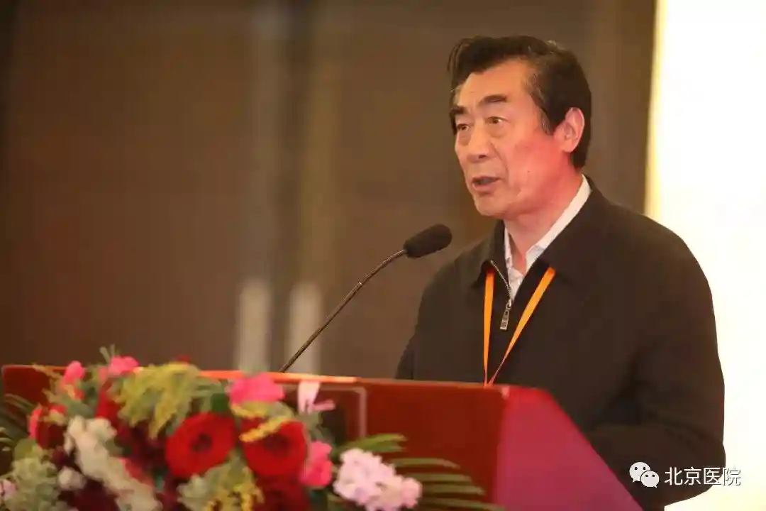 北京医院院长王建业教授致辞。王院长首先对领导、专家及学者们的大力支持表示衷心的感谢,并表示,此次会议中汇聚了诸位专家,不愧为一场学术盛宴,并预祝大会圆满成功。