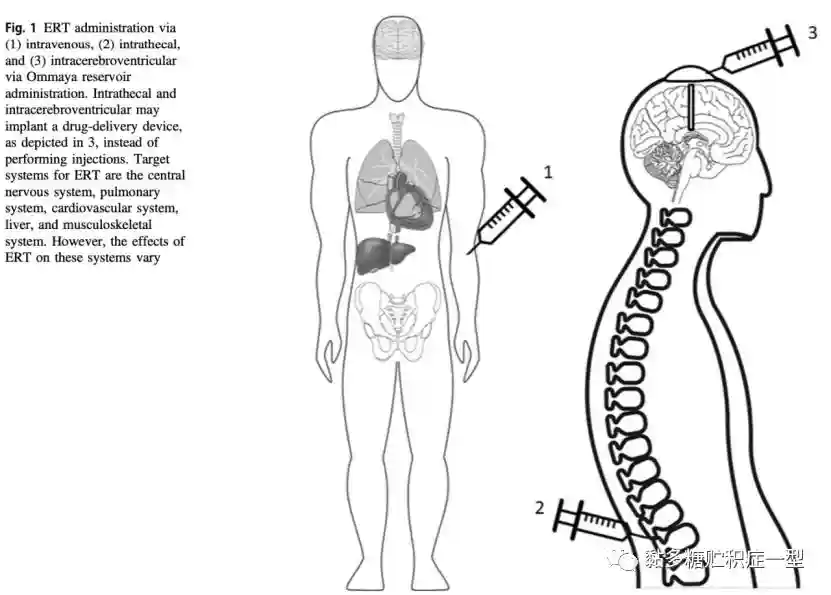 ·如3所示,可在鞘内和侧脑室内植入药物输送装置,而不进行注射。酶替代疗法的靶系统为中枢神经系统、呼吸系统、心血管系统、肝脏和骨骼肌肉系统。然而,酶替代疗法对这些系统的影响是不同的。