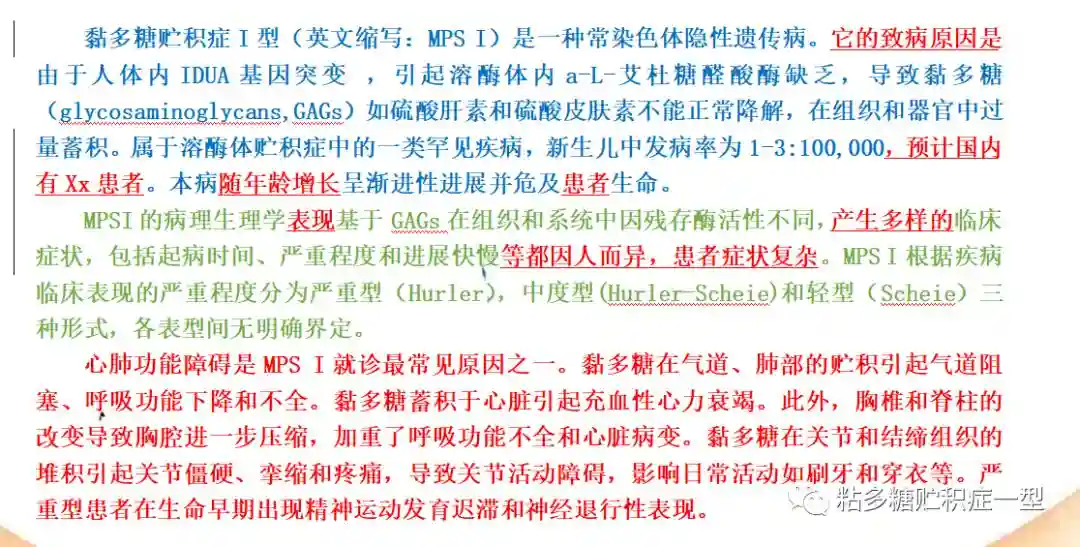 前言:近期,在群里看到这篇“黏多糖贮积症的酶替代疗法:过去、现在和将来”综述性科普文章,内容很详细,拓展了我的认识,尽管本病神经系统受累并不是主要的,部分病人可能出现智能发育落后,认知障碍,所以取得文章的原创者(中国粘多糖贮积症I型的理想的实践者张笑)同意后特别在我的公众号转载,以便让更多的神经科医生也能了解这样一个罕见病。