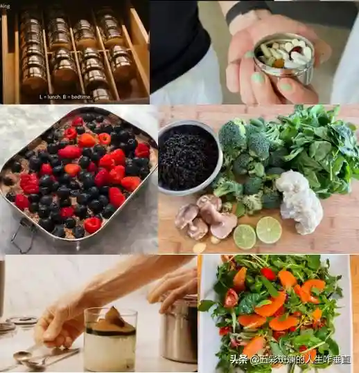 为了保证营养均衡,他每天还要额外服用100多种营养补剂,包括鱼油、维生素、亚精胺、钙、锌等一长串的名字。
