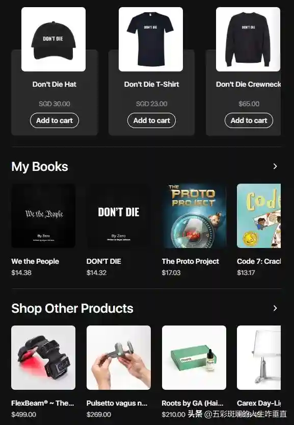 个人网站最开始卖食材、营养补剂,现在甚至还有衣服、书籍、护肤品、医疗器材,俨然形成了一个完整的商业版图。