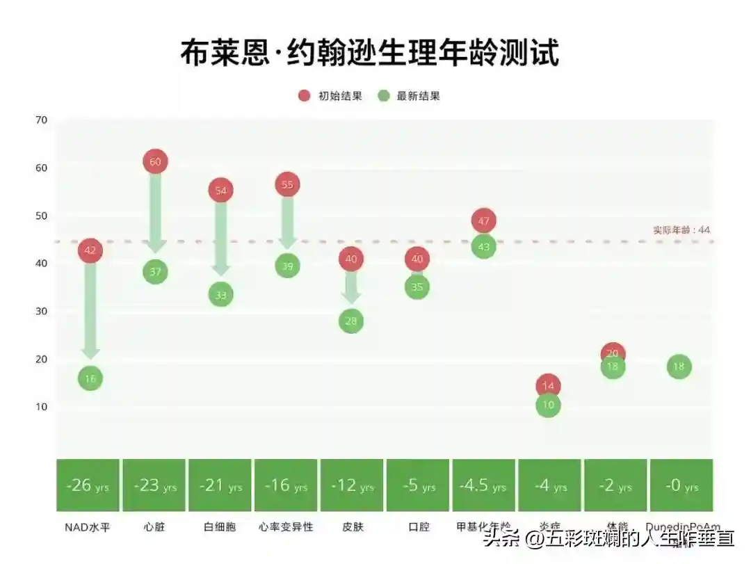 多管齐下,经过一年的时间,Bryan宣称实现了生物意义上的逆龄: