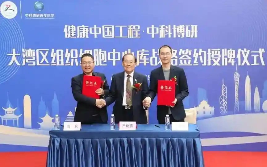 三方隆重举行了“大湾区组织细胞库”授牌签约仪式。原广东省经贸委主任彭书宝,广东医谷谢嘉生总裁,广州银融湾投资开发有限公司董事长、广州市南沙区经济合作促进会牛秀纯会长,原南海舰队某部政委滕飞,恩平市人大罗帜雄书记,环球夫人中国赛区执行主席左越云女士,广东省卫生经济学会社会办医分会会长邓旭林博士,南方医科大学史瑞芬教授,深圳市企业投资者联合会执行会长何绍棋等出席,共同见证了这一历史时刻。