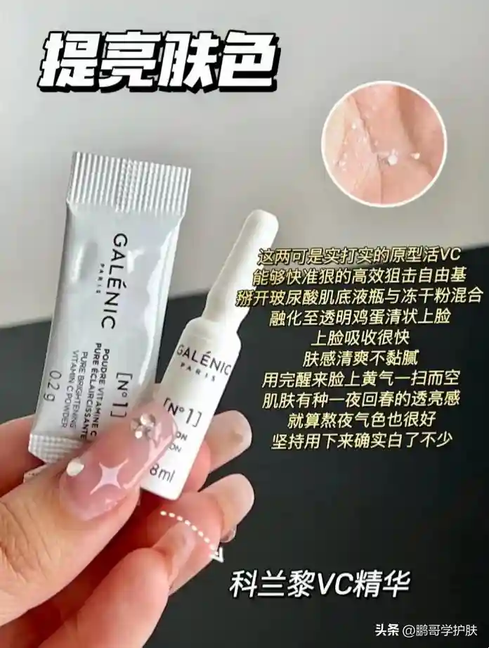 尤其适合晒后急救或第二天有重要场合,一晚上的时间就把肤色给顶上去,隔天皮肤有种抛过光的净透感,次抛设计保证每次用都是新鲜的VC,把VC粉和肌底液混合均匀上脸,清透蛋清质地水润又不粘。