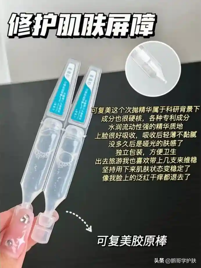 独立包装,方便卫生,出去旅游我也喜欢带上几支来维稳。坚持用下来肌肤状态变稳定了,像我脸上的泛红、干痒都退去了。可复美真的是敏肌的守护神,为啥这么厉害呢?
