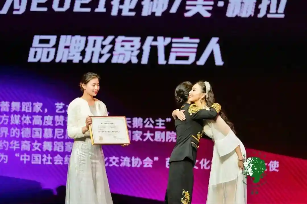 著名芭蕾舞蹈家,艺术制作人,德国巴伐利亚国家大剧院慕尼黑芭蕾舞团首位签约华裔舞蹈家,被誉为“东方天鹅公主”的邱思婷女士为花神董事长赵倩蓓女士进行授牌,颁发“全球可持续发展基金女性平台”浙江省分会执行会长职务牌匾。同时,邱思婷女士正式成为2021花神与美赫拉品牌形象代言人,化身美与艺术的精灵。