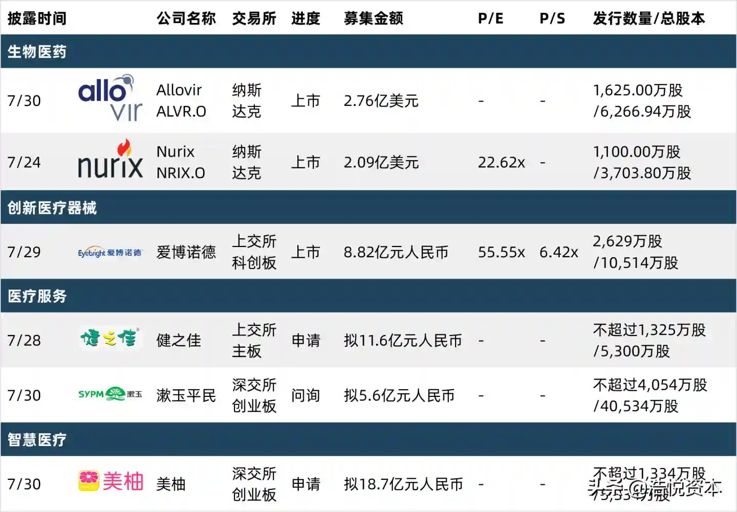 智慧医疗:本周共有3项私募融资交易,1家公司提交上市申请。其中美柚正式向深交所递交招股书,拟创业板上市;3家健康险企业均获得数千万元人民币融资。