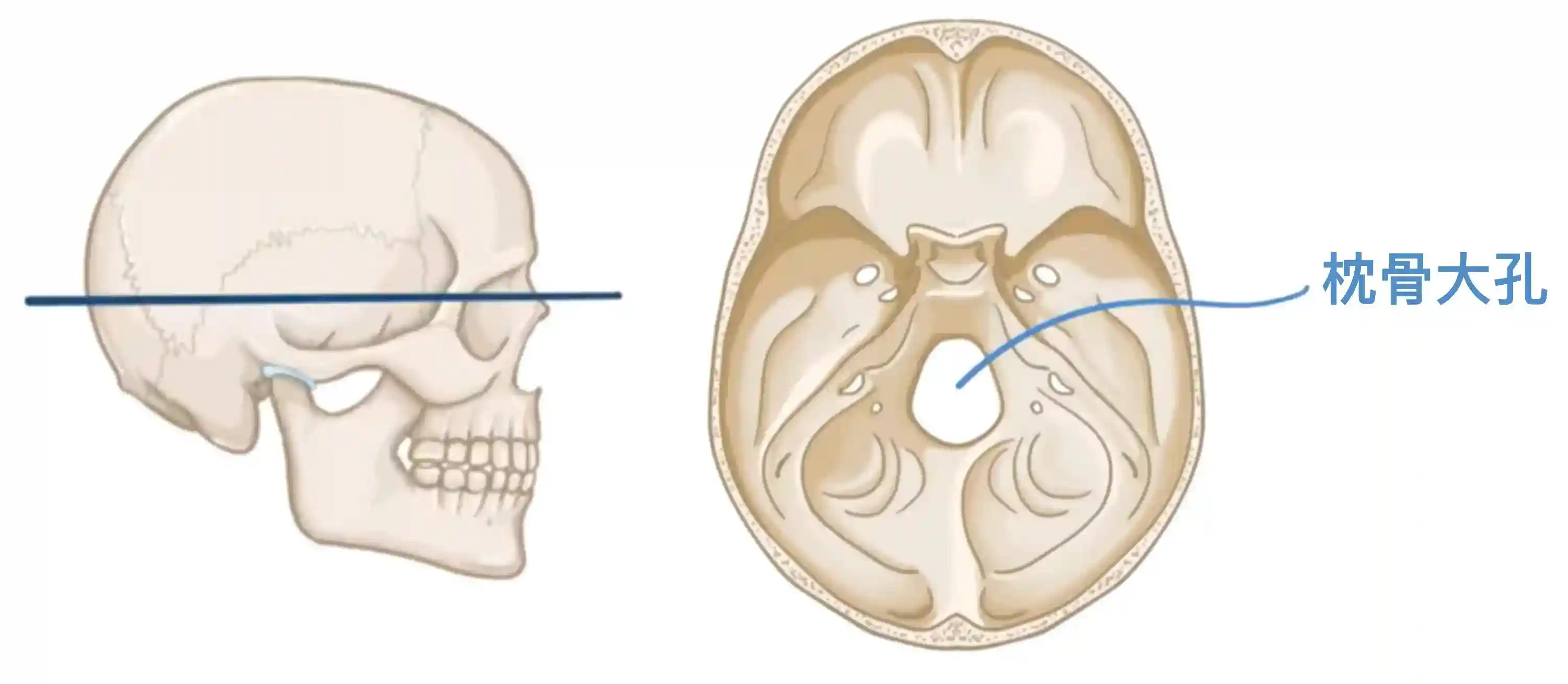 骨上的洞被称为孔,允许血管或神经穿过。例如枕骨的枕骨大孔,允许脊髓穿出颅骨。