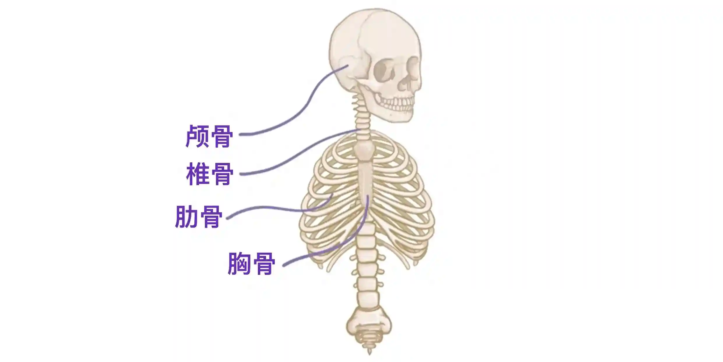 中轴骨由沿着身体垂直轴分布的骨组成。它包括80块骨:组成颅骨的22块骨头,33块椎骨,24块肋骨以及1块胸骨。