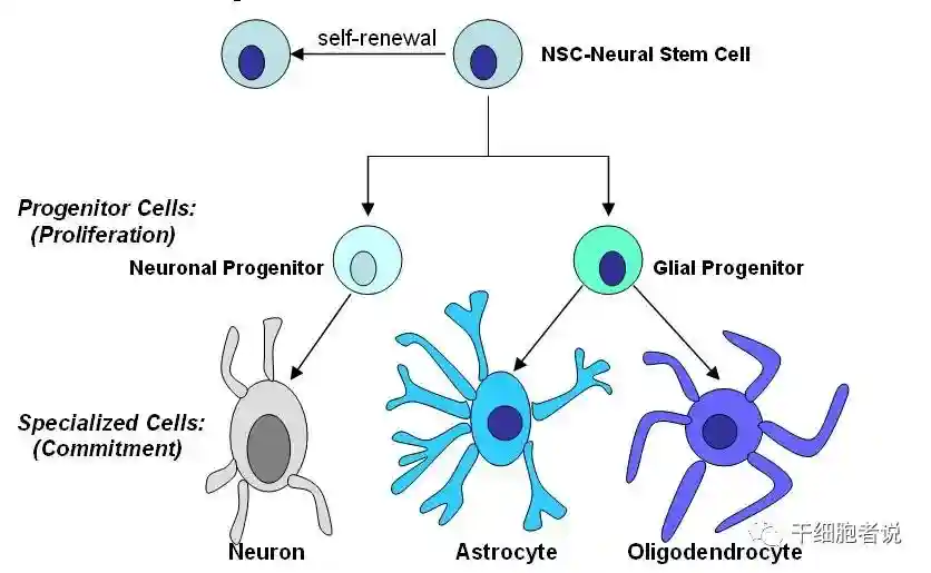 我们所讲的神经干细胞指的就是成体中存在于脑中的中枢神经干细胞,其实在外周也有一些“神经干细胞”称为“神经嵴干细胞”,可以分化成外周神经细胞、神经内分泌细胞和施旺细胞,还可横向分化成色素细胞和平滑肌细胞(这个也叫转分化)。