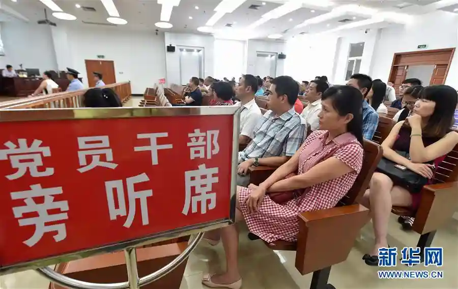 福州长乐的国土系统党员干部在市法院旁听某乡镇土地村建分管领导涉嫌职务犯罪案件的庭审(2016年9月27日摄)。新华社记者宋为伟摄