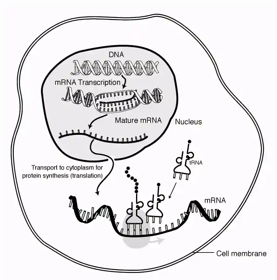 如果没有mRNA,你的基因密码将永远不会被你的身体所利用。蛋白质永远不会合成。你的身体就不能发挥功能。信使核糖核酸,在人类生物学中起着至关重要的作用,特别是在蛋白质合成过程中。mRNA携带从细胞核DNA到核糖体的遗传密码,核糖体是细胞的蛋白质制造机器。
