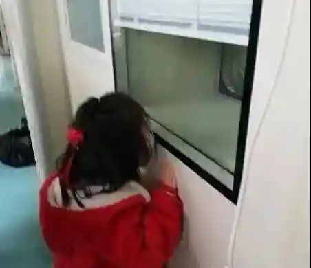 小乐宝还和爸爸一起来到姐姐的移植仓外
