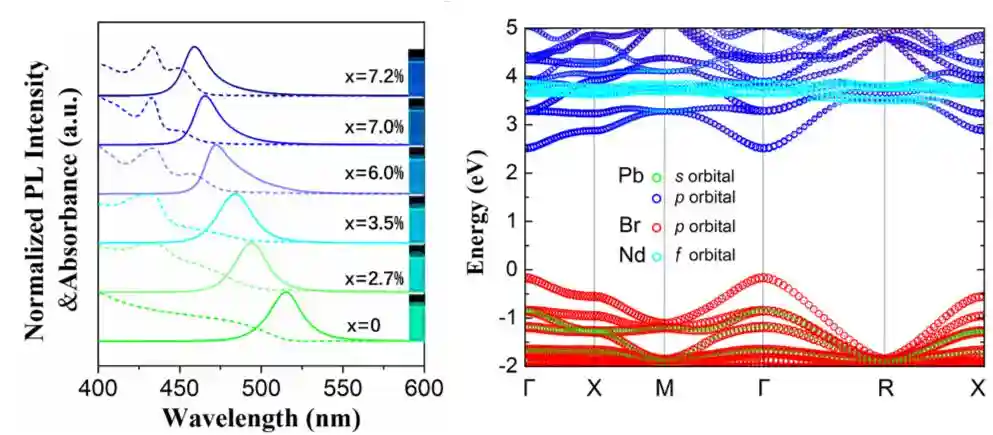 近日,信息科学与工程学院电光源研究所张树宇副研究员与剑桥大学BartomeuMonserrat合作团队在高光效蓝光钙钛矿纳米晶研究上取得重要进展。9月3日,相关研究成果以“HighlyEfficientBlue-EmittingCsPbBr3PerovskiteNanocrystalsthroughNeodymiumDoping”为题,发表于期刊AdvancedScience。该物理机制为钙钛矿纳米晶组分工程提供了新的思路方案,进一步拓宽了钙钛矿材料的应用前景。