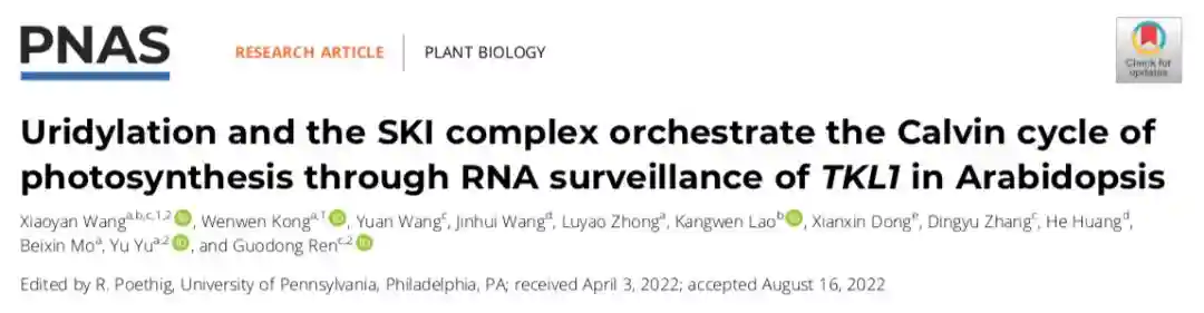 4.生命科学学院任国栋团队合作揭示RNA尿苷化与SKI复合物协同调控植物光合作用新机制
