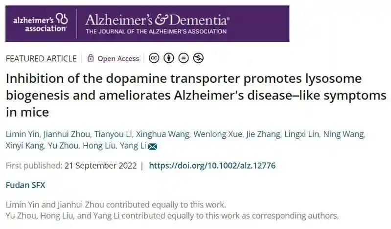 7.基础医学院李洋课题组合作揭示抑制多巴胺转运体促进溶酶体生成并改善小鼠阿尔茨海默病样症状的机制