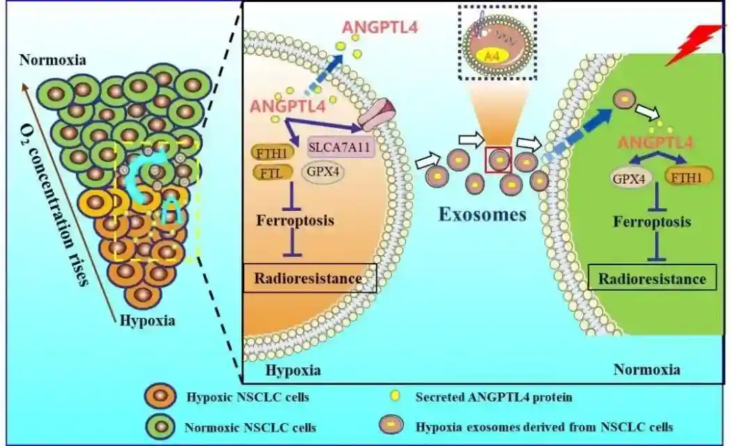 11.放射医学研究所邵春林团队研究发现:乏氧诱导的外泌体蛋白ANGPTL4通过抑制铁死亡介导肺癌的辐射抗性
