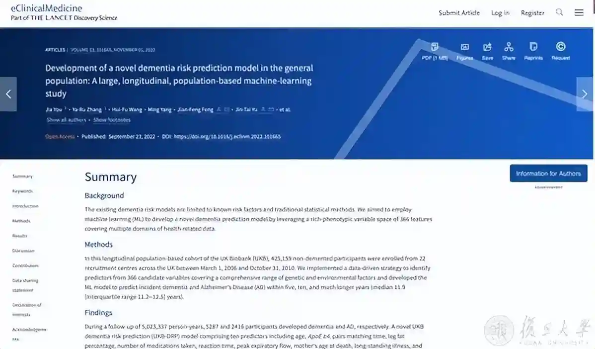 1.类脑研究院冯建峰教授和附属华山医院郁金泰教授医理交叉联合攻关团队提前十年预测痴呆发病风险